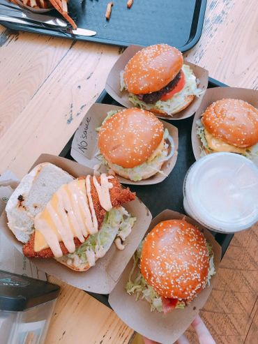 Burgers, Hot Dogs, Lumpia, Frappes, Craft Beer, Wine